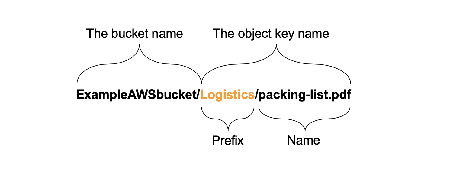 前缀:在桶名字和对象之间的信息,使用'/' (斜线) 分隔路径进行隔断,其中对象存储在存储桶中。存储桶名称、前缀和对象名称的组合以全局方式唯一标识对象。前缀分区是一种Amazon S3机制,用于在一组通用的对象键名之间分配性能。在没有任何共享前缀的情况下,所有对象都根据存储桶名称共享一个分区。