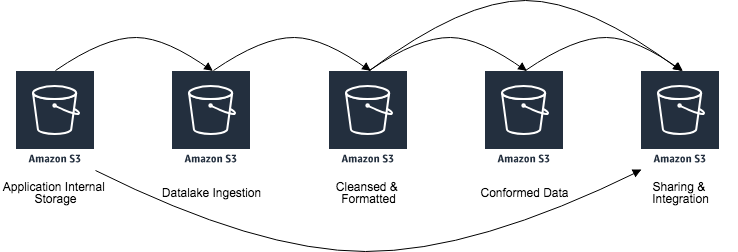 通常,只有在需要深入细分安全策略时,才应为数据湖创建新的存储桶。S3存储桶策略 为您提供一种表达方式来管理大量不同前缀的安全。对于单个存储桶,如果您有非常复杂的安全访问要求,您可能会发现单个存储桶策略将变得难以维护。在这种情况下,您可能有数量较少的存储桶,每个存储桶都有其自己的较小、可管理的安全策略。