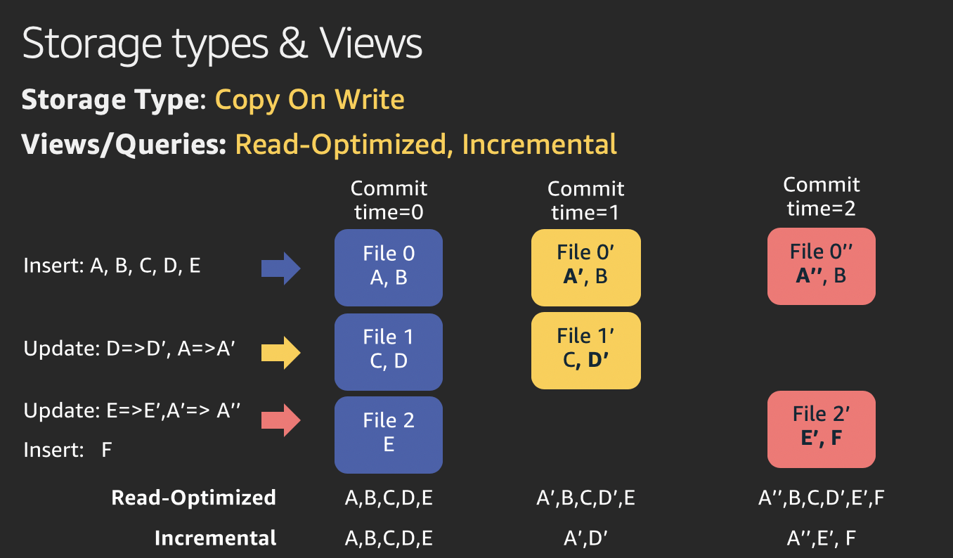 写入时复制(CoW)–数据以列格式(Parquet)存储,并且每次更新都会在写入过程中创建文件的新版本。 CoW是默认存储类型。